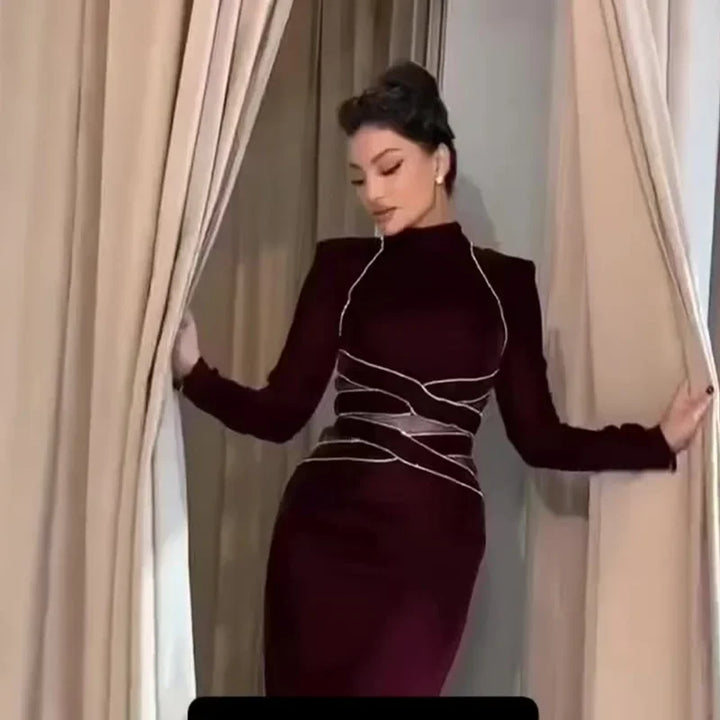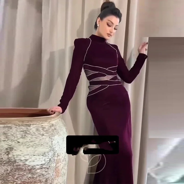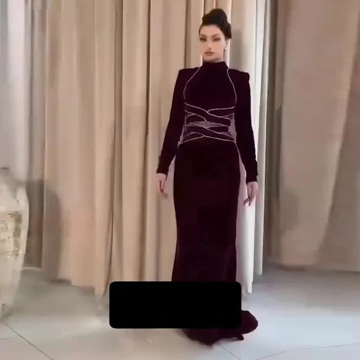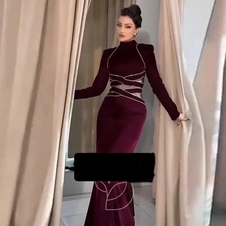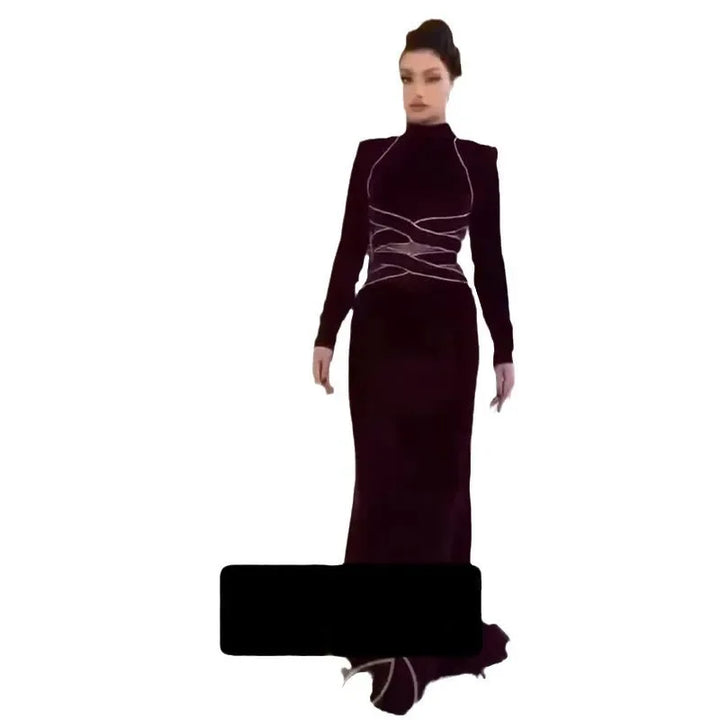 فستان مخمل انيق بتصميم اوروبي متقاطع الحواف برقة دائرية