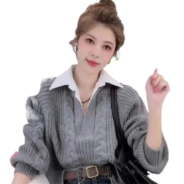 بلوفر شتوي نسائي رسمي بأكمام طويلة وكنزة