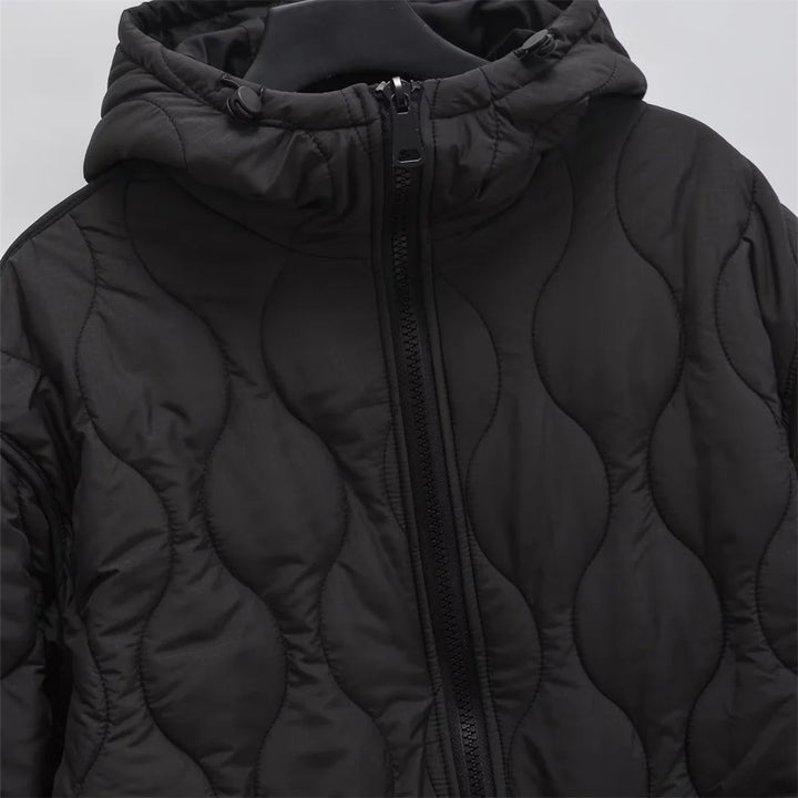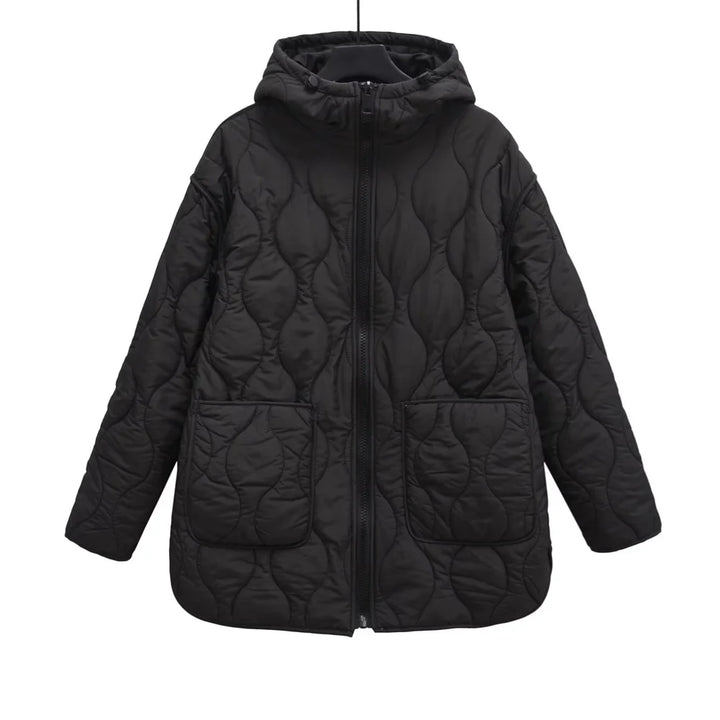 جاكيت نسائي خريفي شتوي بغطاء رأس وياقة واقفة من القطن