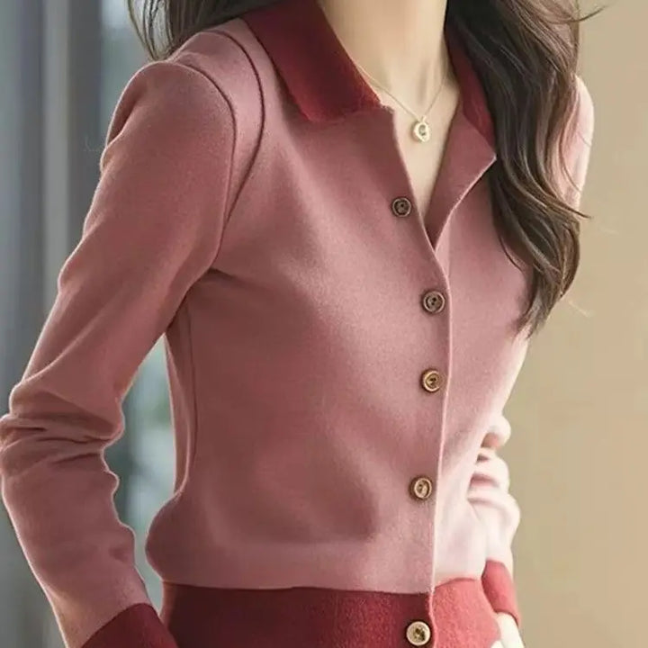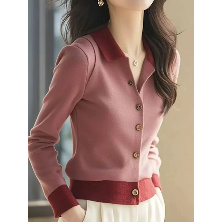 سترة كارديجان عصرية محبوكة بياقة بولو بألوان متعددة للنساء مناسبة للخريف والشتاء، جديدة وغير رسمية، بصف واحد من الأزرار
