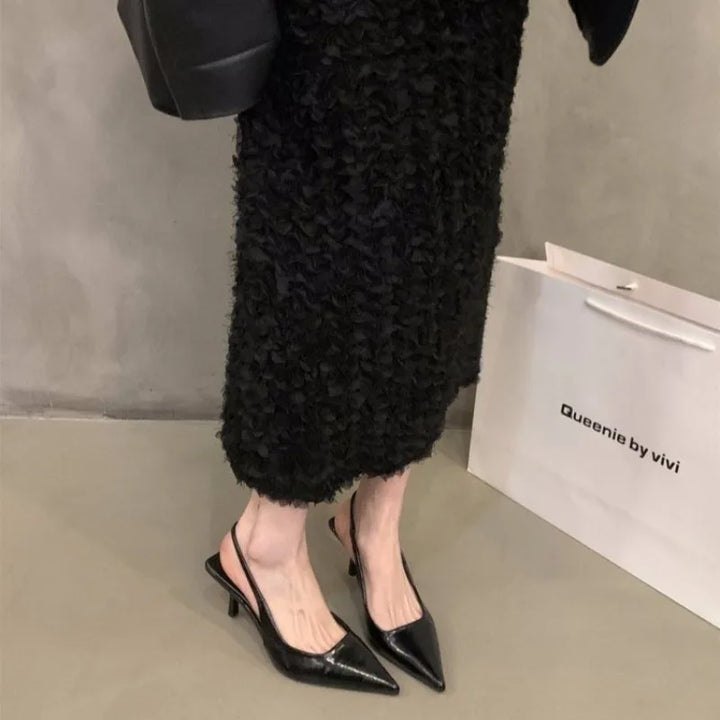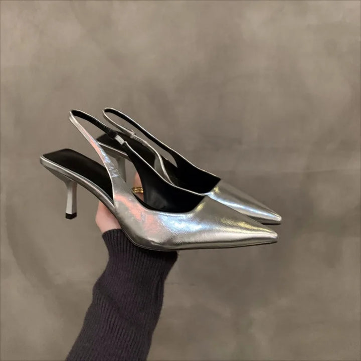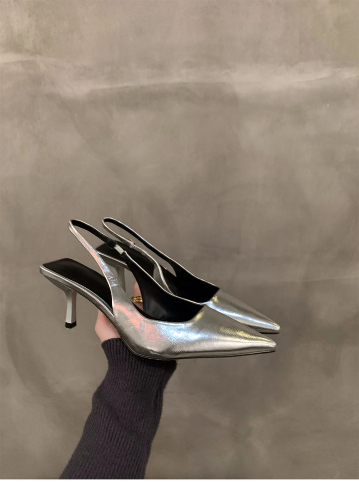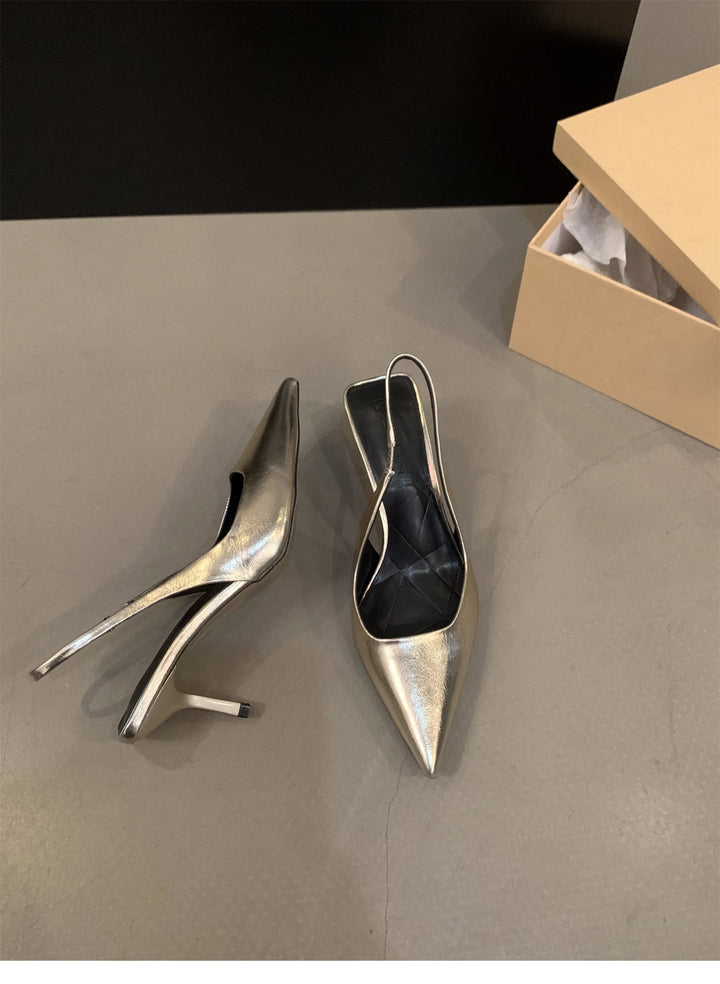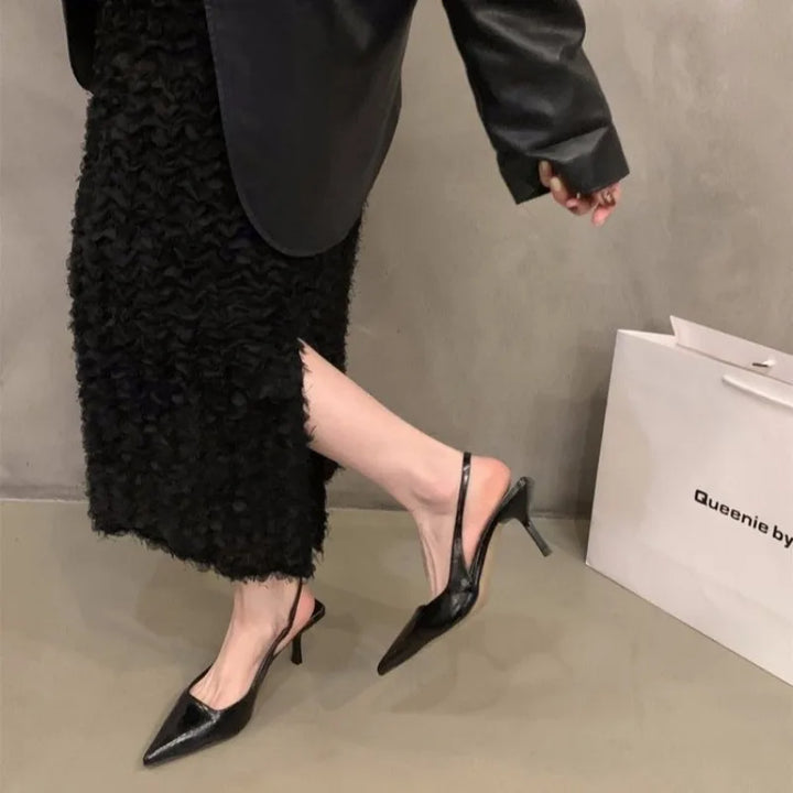 كعب عالٍ ومقدمة مغلقة وشريط مطاطي غير قابل للانزلاق