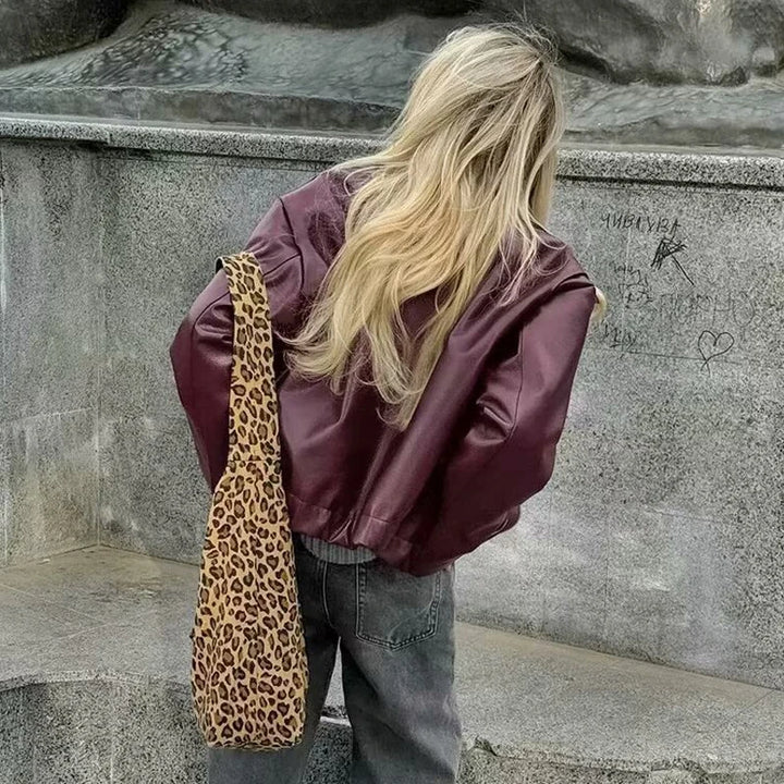 جاكيت نسائي بومبر من الجلد الصناعي بسحاب وتصميم عصري