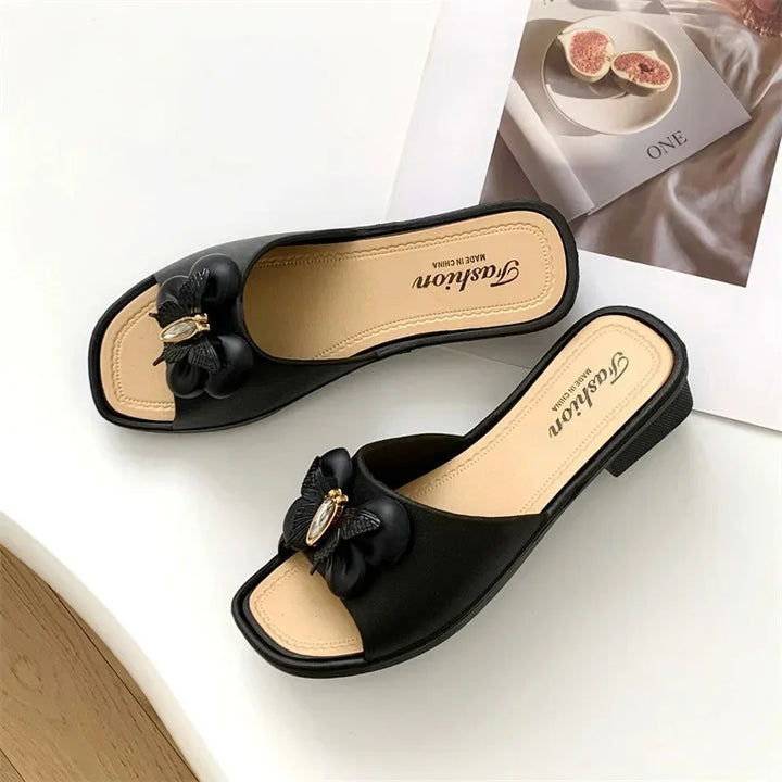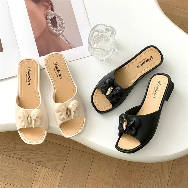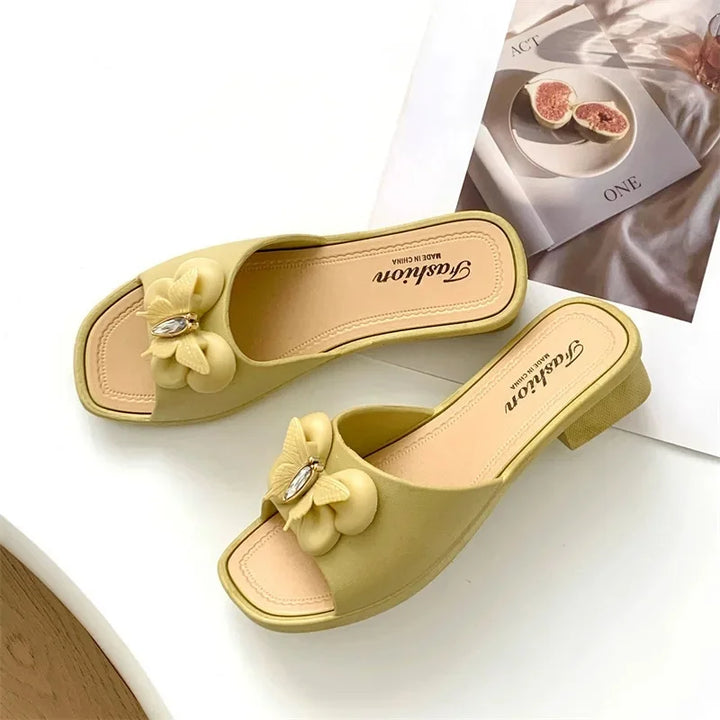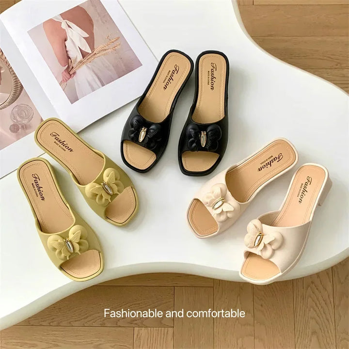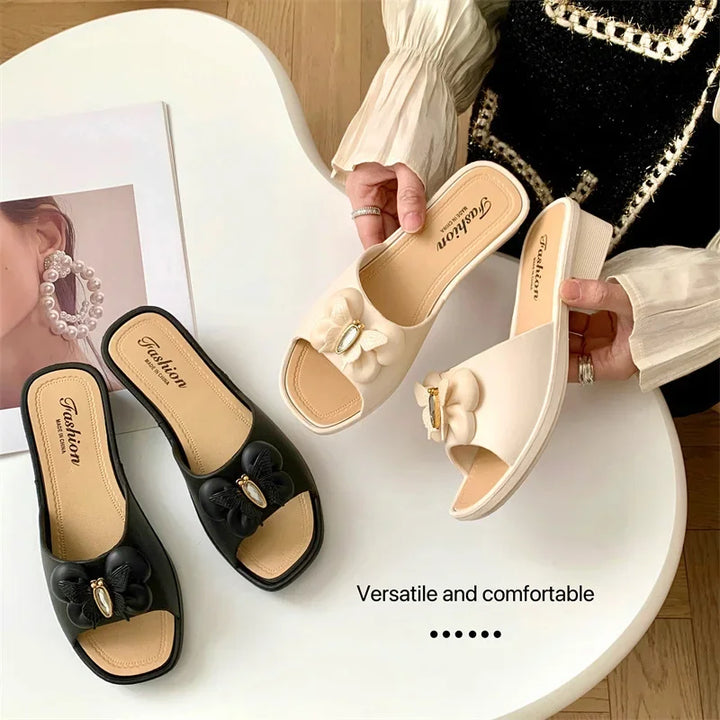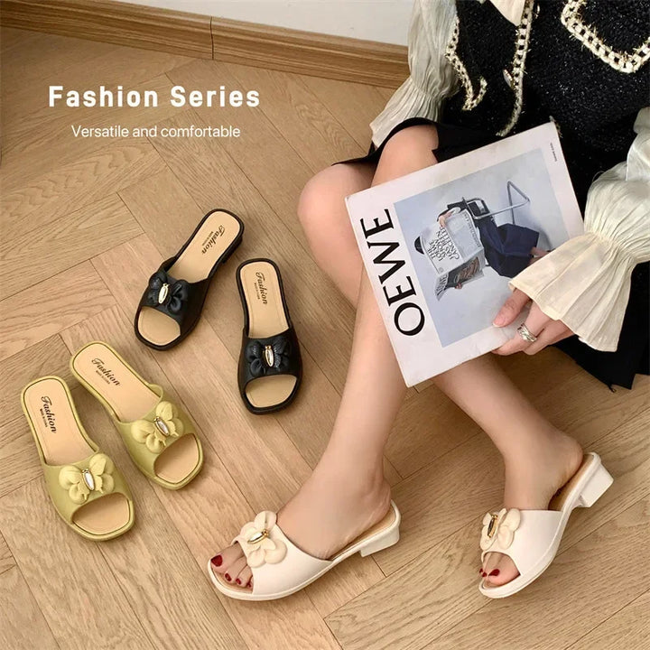 صندل نسائي انيق بكعب سميك ومضادة للانزلاق مريح