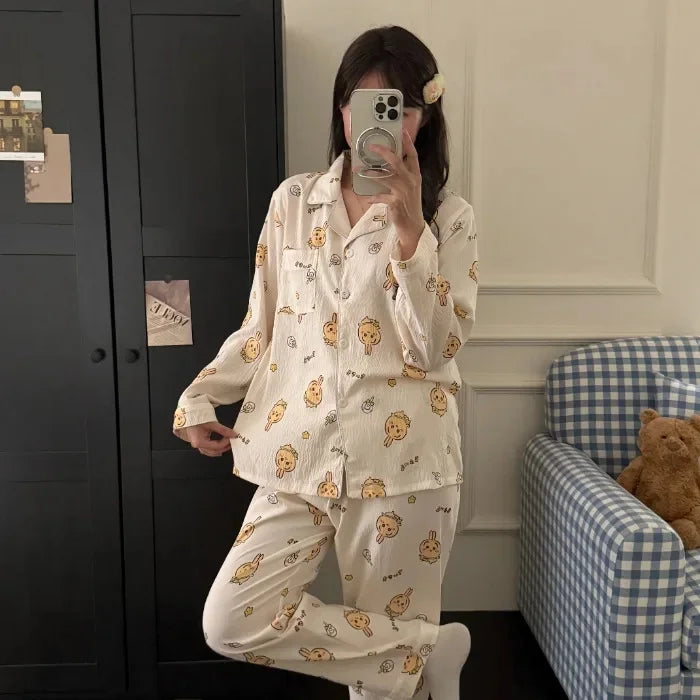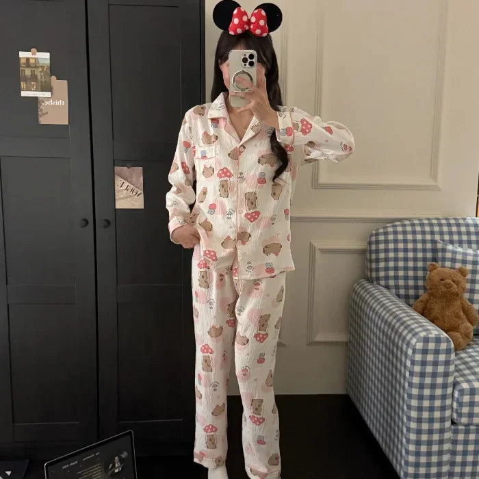 بجامة نوم نسائية من القطن الناعم خفيفة ومريحة صيفية