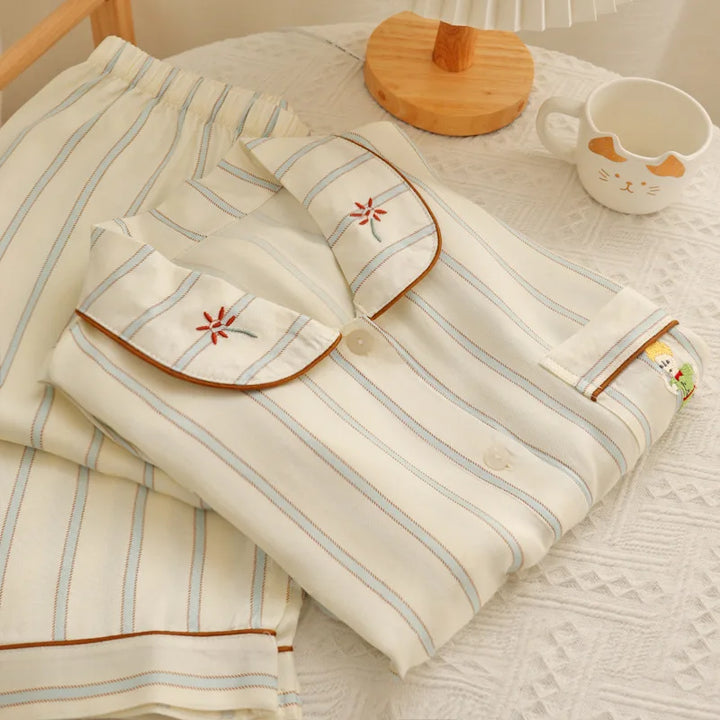 بلوزة بأكمام طويلة وبنطال مريح لراحة مثالية في المنزل.