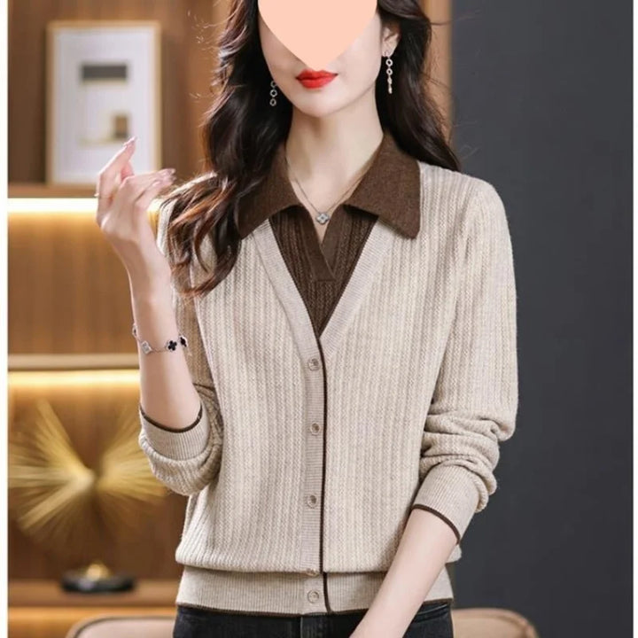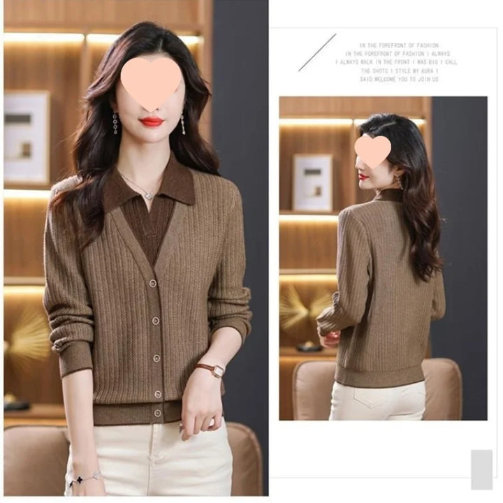 بلوزة نسائية محبوكة بأكمام طويلة من قطعتين