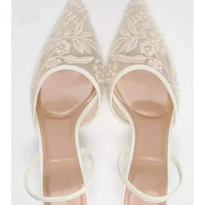 رقم الموديل: صنادل نسائية أنيقة بكعب مصمم ومطرزة بالزهور