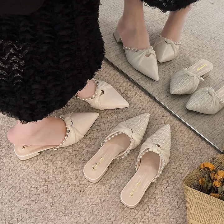 صندل نسائي بكعب سميك على الطراز الفرنسي فاخر