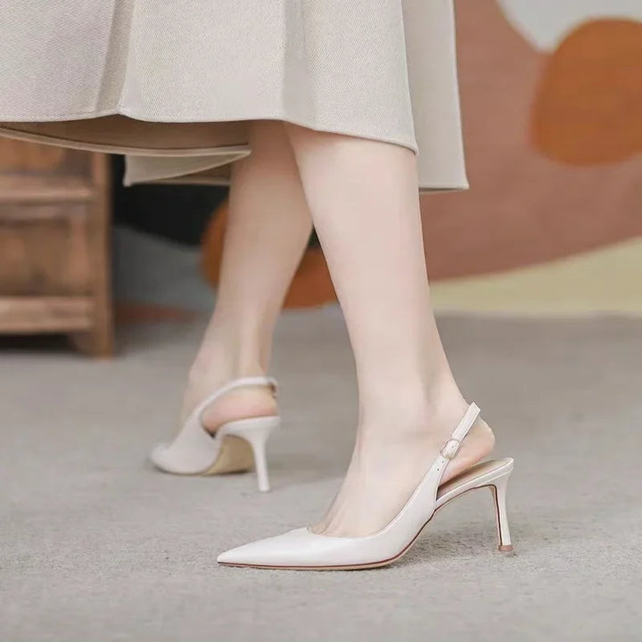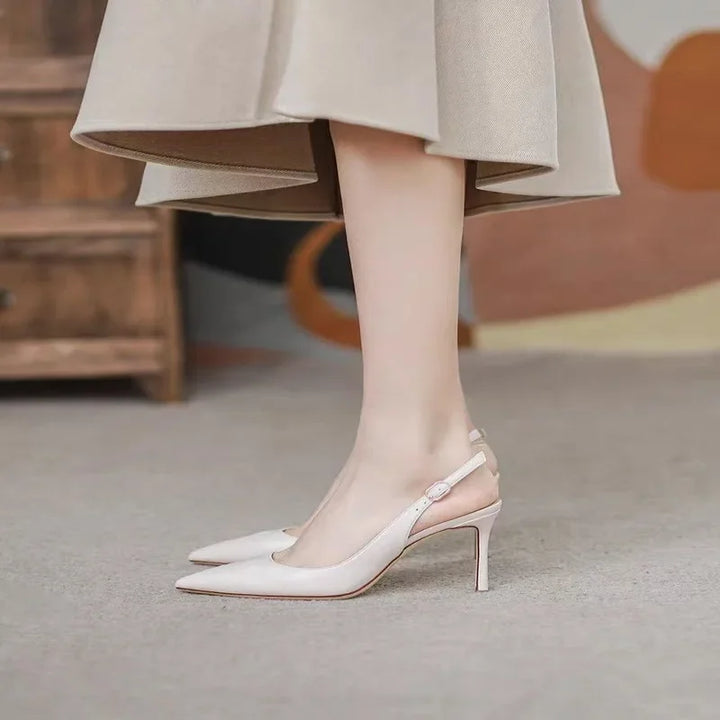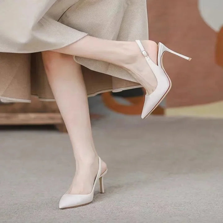 كعب عالٍ مدبب وأشرطة أنيقة مفتوح من الجانب